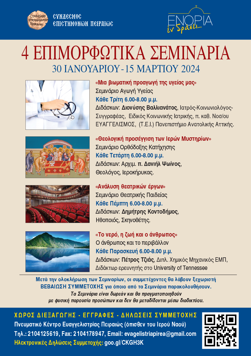 Τη φετινή χρονιά θα πραγματοποιηθούν τέσσερα Σεμινάρια, διάρκειας επτά εβδομάδων.