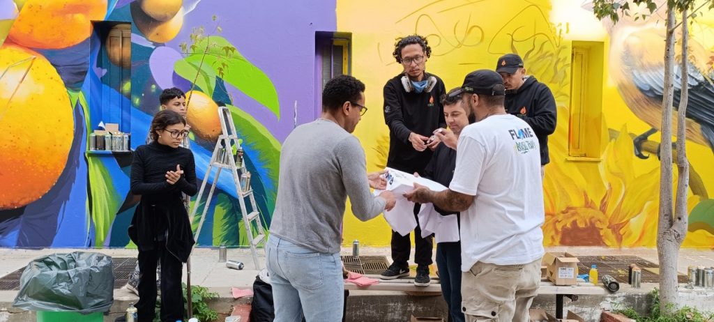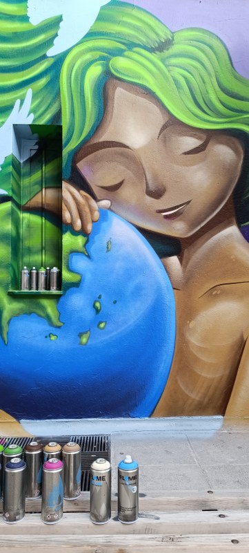 Για την συγκεκριμένη δράση συμμετείχαν τέσσερις καλλιτέχνες απο την Βραζιλία, φιλοξενούμενοι της Flame by Cosmos Lac. Οι καλλιτέχνες ήρθαν για πρώτη φορά στη χώρα μας και επιμελήθηκαν το έργο τους αφιερωμένο στη προστασία του περιβάλλοντος και στη μητέρα γη. Υπενθυμίζοντας την οικουμενικότητα των προβλημάτων.