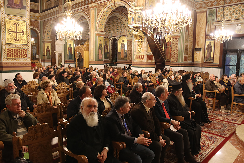 Τέλος, ο Σεβασμιώτατος αναφέρθηκε στο Νεομάρτυρα Άγιο Κωνσταντίνο τον Υδραίο, του οποίου την Κάρα θα υποδεχθεί ο Ναός της Ευαγγελιστρίας την Παρασκευή 22 Μαρτίου, στο πλαίσιο των εορταστικών εκδηλώσεων «Ευαγγελίστρια 2024». Ο οποίος θυσιάστηκε για την πίστη, «για να είμαστε σήμερα εμείς ελεύθεροι, Ευρωπαίοι πολίτες, να μην είμεθα το υπόλοιπο της Ευρωπαϊκής Τουρκίας. Οι Νεομάρτυρες με το αίμα τους διακράτησαν της ιδιοπροσωπείας μας και μας τόνωσαν τον πόθο της λευτεριάς.»