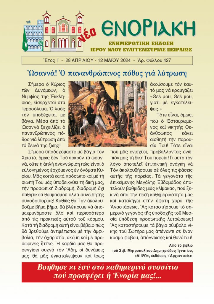 «Νέα Ενοριακή» 28 Απριλίου – 12 Μαΐου 2024