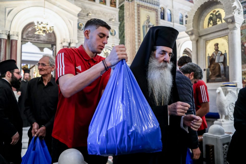 Εκεί όπου ο πρόεδρος και διευθύνων σύμβουλος του σταδίου «Γ. Καραϊσκάκης», κ. Βασίλης Βασιλειάδης, μαζί με τους ποδοσφαιριστές των Νέων οι οποίοι κατέκτησαν το UEFA Youth League, Χαράλαμπο Κωστούλα, Ισίδωρο Κουτσίδη, αλλά και τον τερματοφύλακα της πρώτης ομάδας και του Ολυμπιακού Κ23, Θανάση Παπαδούδη, επισκέφτηκαν τον Ιερό Ναό Αγίου Νικολάου και μοίρασαν χιλιάδες γεύματα στους δημότες Πειραιά. Ο κ. Βασιλειάδης παρέδωσε χρηματικές επιταγές για την οικονομική ενίσχυση του έργου της Ι.Μ. Πειραιώς, αλλά και τη μισθοδοσία ιεροδιακόνων της Μητρόπολης Πειραιά.