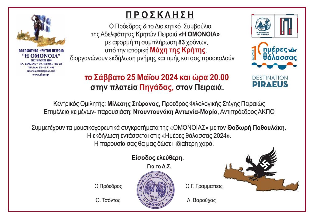 Εκδηλώσεις Εφημερίδα Πολιτισμός “Η Μάχη της Κρήτης” εκδήλωση μνήμης & τιμής από την Αδελφότητα Κρητών Πειραιά “Η ΟΜΟΝΟΙΑ” 21 Μαΐου, 202421 Μαΐου, 2024 DIMITRIS 0 Σχόλια ΑΔΕΛΦΟΤΗΤΑ ΚΡΗΤΩΝ ΠΕΙΡΑΙΑ, ΕΚΔΗΛΩΣΕΙΣ, ΗΜΕΡΕΣ ΘΑΛΑΣΣΑΣ, ΟΜΟΝΟΙΑ, ΠΟΛΙΤΙΣΜΟΣ, ΤΣΟΝΤΟΣ Author: DIMITRIS
