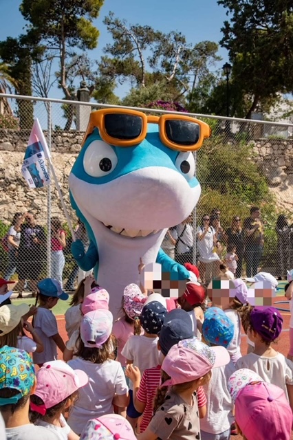 Ξεχωριστή χαρούμενη νότα στη σημερινή δράση ήταν ο Ζαχαρίας, η μασκότ – καρχαρίας, που φωτογραφήθηκε με τα παιδιά και έπαιξε μαζί τους «Θαλασσοπαιχνιδίσματα».