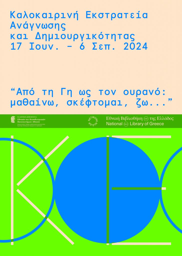-Η Καλοκαιρινή Εκστρατεία Ανάγνωσης και Δημιουργικότητας 2024 διοργανώνεται από την Εθνική Βιβλιοθήκη της Ελλάδος και υλοποιείται χάρη στην αγαστή συνεργασία της ΕΒΕ και του Εργαστηρίου Παιδαγωγικών Εφαρμογών και Παραγωγής Εκπαιδευτικού Υλικού, του Παιδαγωγικού Τμήματος Δημοτικής Εκπαίδευσης του ΕΚΠΑ (Διευθυντής: Καθηγητής Κωνσταντίνος Δ. Μαλαφάντης).