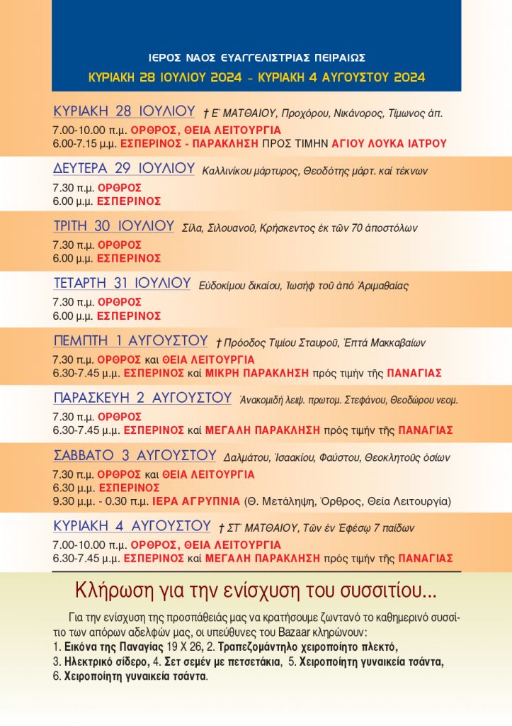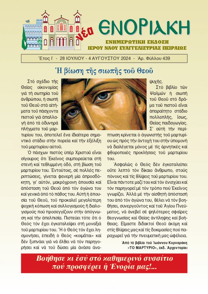 «Νέα Ενοριακή» 28 Ιουλίου – 4 Αυγούστου 2024