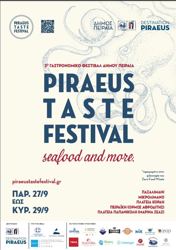 Το 3ο Γαστρονομικό Φεστιβάλ του Δήμου Πειραιά, «PIRAEUS TASTE FESTIVAL, Sea Food and More», η γιορτή γαστρονομίας με παραδοσιακές και μοντέρνες γεύσεις, πολιτιστικά δρώμενα και διεθνείς συμμετοχές, επιστρέφει στο μεγάλο λιμάνι από την Παρασκευή 27 έως την Κυριακή 29 Σεπτεμβρίου, αναδεικνύοντας τις ομορφότερες γωνιές του Πειραιά και καθιστώντας την πόλη σημαντικό πόλο της γαστρονομίας της θάλασσας.