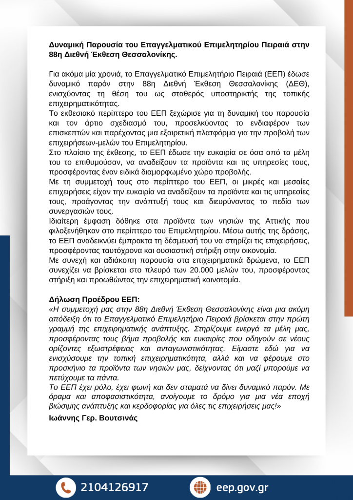 Εφημερίδα Πολιτική - Επικαιρότητα 88η ΔΕΘ – Το ΕΕΠ με όραμα & αποφασιστικότητα ανοίγει δρόμο για μια νέα εποχή! 25 Σεπτεμβρίου, 202425 Σεπτεμβρίου, 2024 DIMITRIS 0 Σχόλια ΒΟΥΤΣΙΝΑΣ, ΔΕΘ, ΕΕΠ, ΕΠΑΓΓΕΛΜΑΤΙΚΟ ΕΠΙΜΕΛΗΤΗΡΙΟ ΔΗΛΩΣΗ ΠΡΟΕΔΡΟΥ ΕΕΠ κου ΙΩΑΝΝΗ ΒΟΥΤΣΙΝΑ Author: DIMITRIS