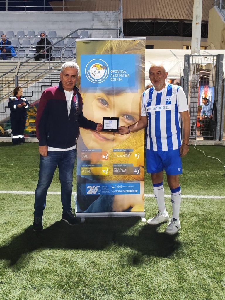 Ο ΠΣΑΤ πριν την έναρξη του αγώνα, τίμησε με πλακέτα τον  Δήμαρχο Νίκαιας- Αγ. Ι. Ρέντη Κωνσταντίνο Μαραγκάκη, τον Αντιδήμαρχο Αθλητισμού Γιώργο Μουταφίδη και τον Πρόεδρο του ”Χαμόγελου” Κώστα Γιαννόπουλο, για την πολύχρονη κοινωνική προσφορά του ο οποίος απουσίαζε σε ταξίδι και το παρέλαβε  η Αλεξάνδρα Ψωμαθιανού, ψυχολόγος από το Τμήμα Πρόληψης κι Ευαισθητοποίησης Παιδιών, Γονέων και Εκπαιδευτικών του Οργανισμού «Το Χαμόγελο του Παιδιού».   Ο πρόεδρος του ΠΣΑΤ Βαγγέλης Ιωάννου δεν μπόρεσε να παραβρεθεί και την πλακέτα προς τιμήν του παρέλαβε ο αθλητικός συντάκτης Αλέκος Θεοφιλόπουλος.   Ο αρχηγός της ομάδας ”Έλληνες Επίλεκτοι” που τελεί υπό την αιγίδα του ”Χαμόγελου” Αργύρης Κωστάκης   επισήμανε ότι η κοινή δράση όλων μπορεί να φέρει φως και ελπίδα σε αυτούς τους δύσκολους καιρούς.