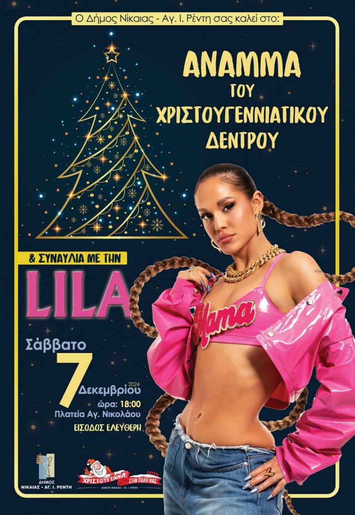 Άναμμα Χριστουγεννιάτικου Δέντρου για πρώτη φορά στον Δήμο Νίκαιας-Αγ.Ι. Ρέντη & συναυλία της LILA