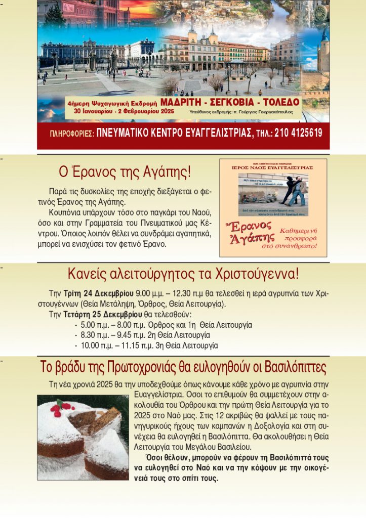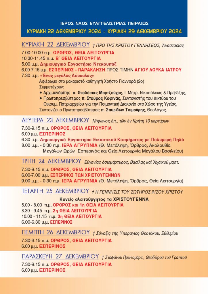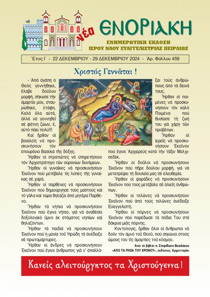 «Νέα Ενοριακή» 22 Δεκεμβρίου – 29 Δεκεμβρίου 2024