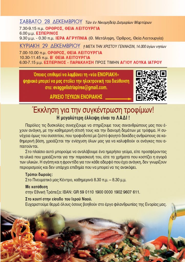To αρχείο της ενημερωτικής έκδοσης «Νέα Ενοριακή», του Ιερού Ναού Ευαγγελιστρίας Πειραιώς, μπορείτε να το δείτε εδώ: