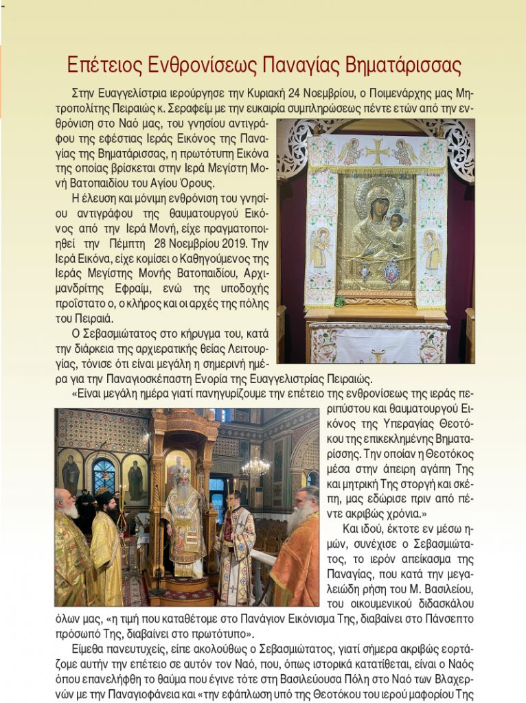 • Ενημερωτική έκδοση Ιερού Ναού Ευαγγελιστρίας Πειραιώς.