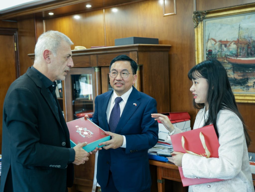 Ο Δήμαρχος Πειραιά Γιάννης Μώραλης υποδέχθηκε, χθες, στο γραφείο του στο Δημαρχείο, τον νέο Πρέσβη της Κίνας στην Ελλάδα Fang Qiu, με τον οποίο συζήτησαν θέματα κοινού ενδιαφέροντος.