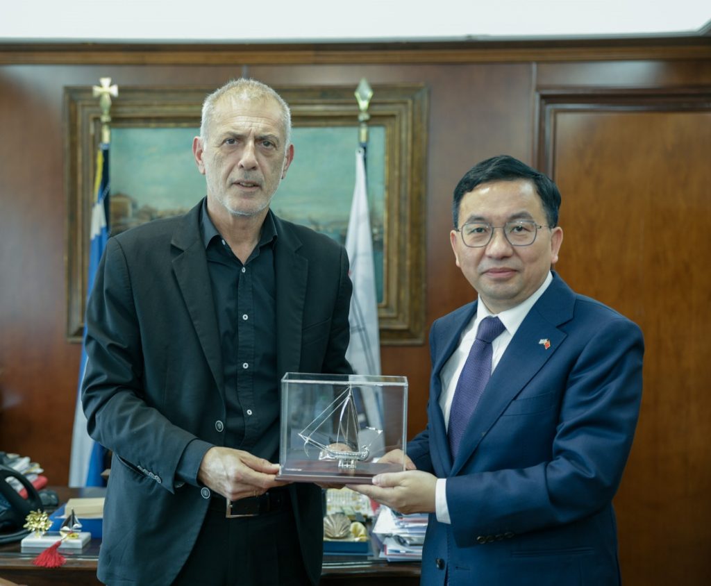 Συνάντηση Δημάρχου Πειραιά Γιάννη Μώραλη με τον νέο Πρέσβη της Κίνας στην Ελλάδα Fang Qiu