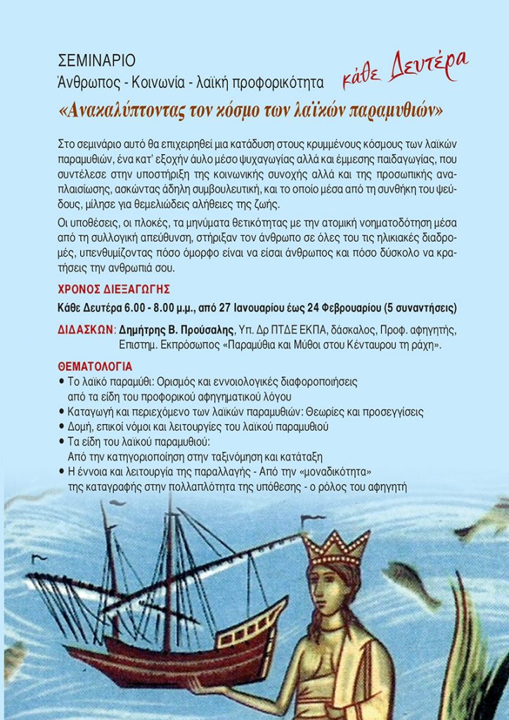 ΣΕΜΙΝΑΡΙΟ Άνθρωπος – Κοινωνία – λαϊκή προφορικότητα