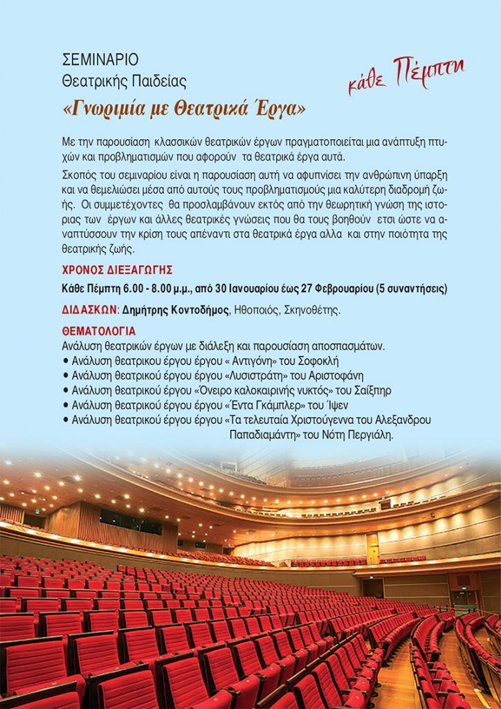 - Θεατρική παιδεία «Γνωριμία με Θεατρικά Έργα».