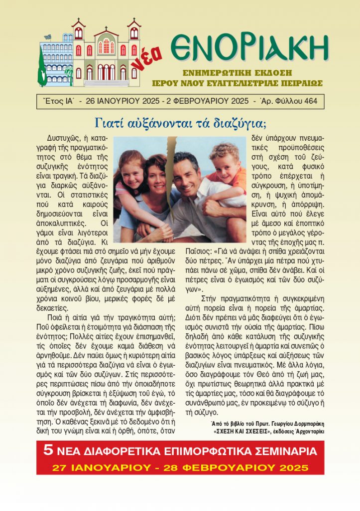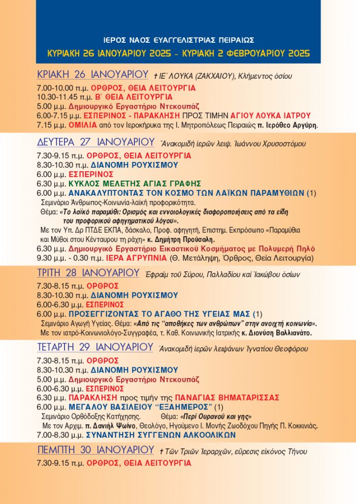 «Νέα Ενοριακή» 26 Ιανουαρίου – 2 Φεβρουαρίου 2025