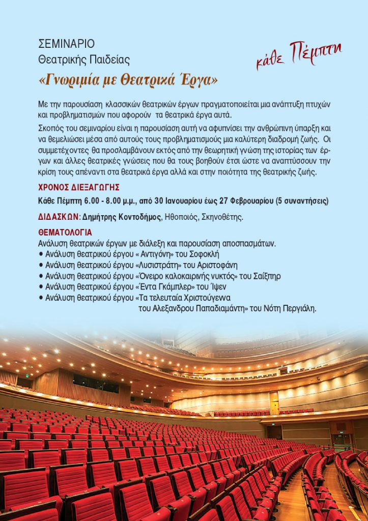 - Θεατρική παιδεία «Γνωριμία με Θεατρικά Έργα».
