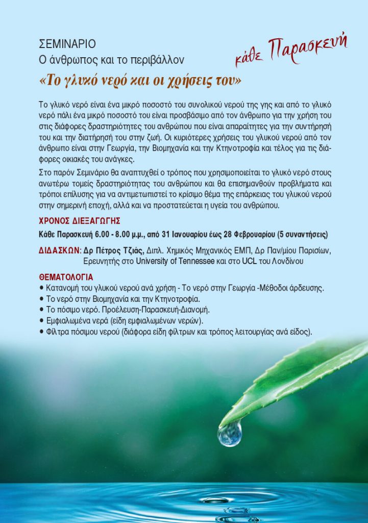 - Ο άνθρωπος και το περιβάλλον «Το γλυκό νερό και οι χρήσεις του».
