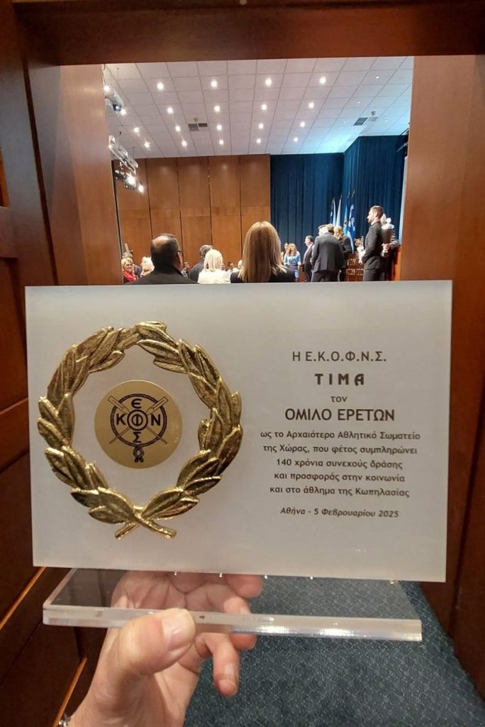 Βραβεύτηκε επίσης κ ο ΟΜΙΛΟΣ ΕΡΕΤΩΝ, ο αρχαιότερος ναυταθλητικός όμιλος της Ελλάδας, τιμήθηκε από την Ελληνική Κωπηλατική Ομοσπονδία για τη συνεχή και αδιάλειπτη προσφορά του στον ναυταθλητισμό εδώ και 140 χρόνια.