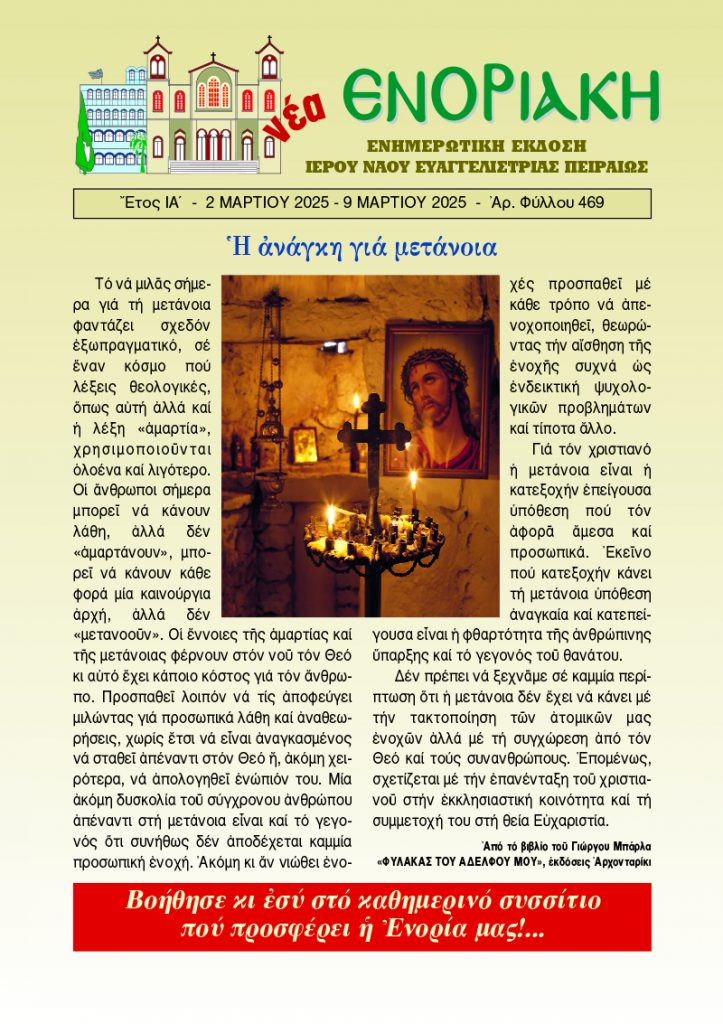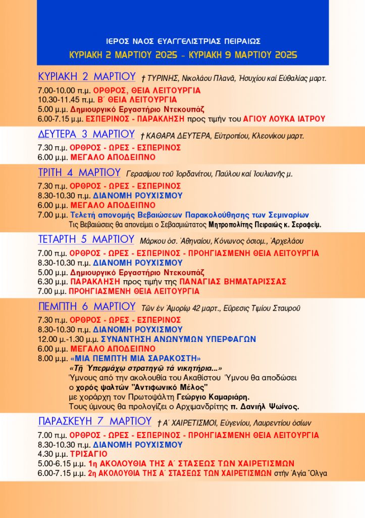 «Νέα Ενοριακή» 2 Μαρτίου – 9 Μαρτίου 2025