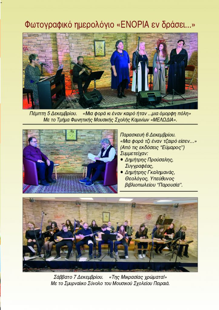 • Αν θέλετε να λαμβάνετε μήνυμα στο Viber, για την έναρξη μετάδοσης κάθε εκδήλωσης μαζί με το Link που μπορείτε να την παρακολουθήσετε, στείλτε μας στο email μας το κινητό σας τηλέφωνο να σας απευθύνουμε πρόσκληση ώστε να μπείτε στην ομάδα «ΕΝΟΡΙΑ εν δράσει».