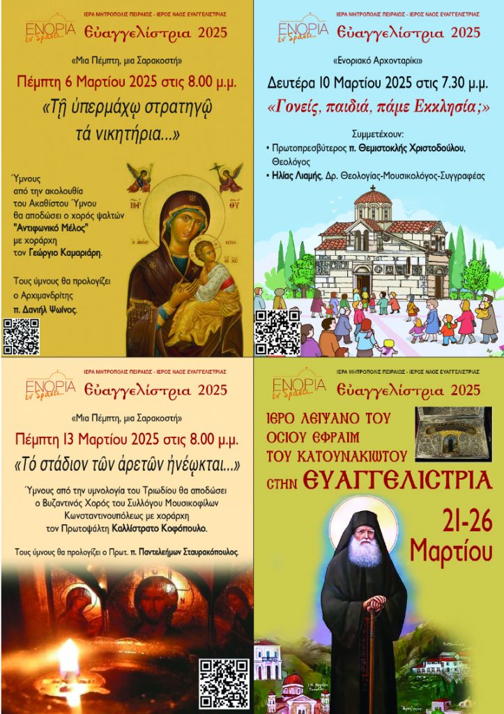 Η Ενορία της Ευαγγελιστρίας Πειραιώς, για 27η χρονιά σας απευθύνει μια ανοιχτή πρόσκληση επικοινωνίας, συντροφικότητας και εποικοδομητικής συνεργασίας για την κατανυκτική αυτή περίοδο.