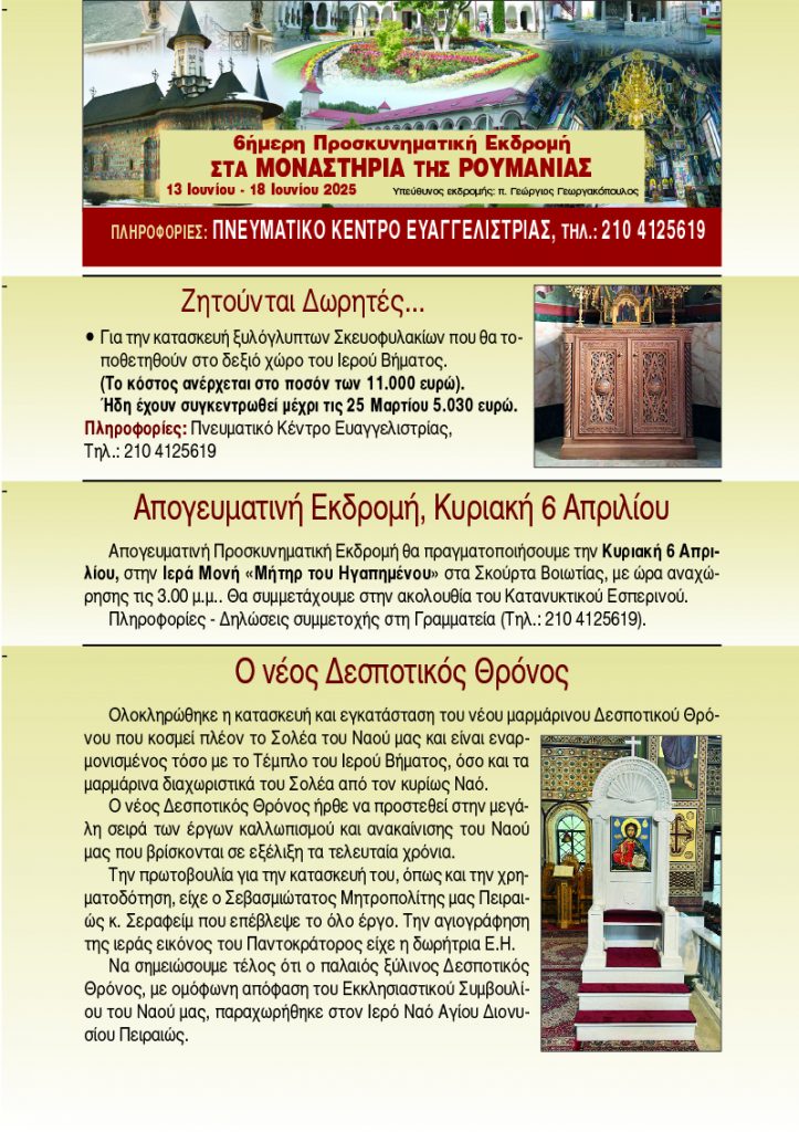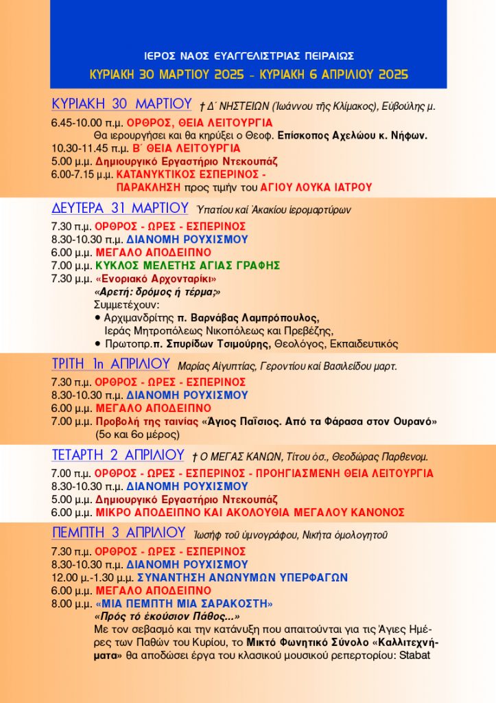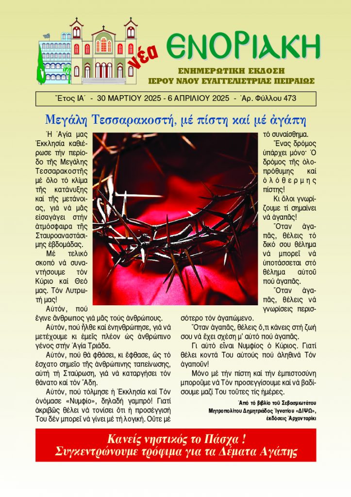 «Νέα Ενοριακή» 30 Μαρτίου – 6 Απριλίου 2025