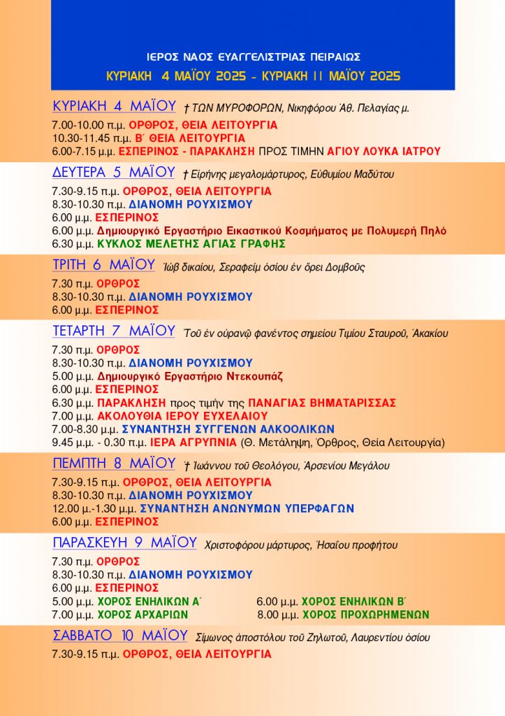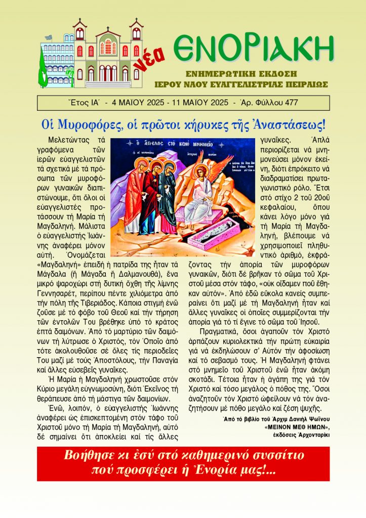 «Νέα Ενοριακή» 4 Μαΐου – 11 Μαΐου 2025
