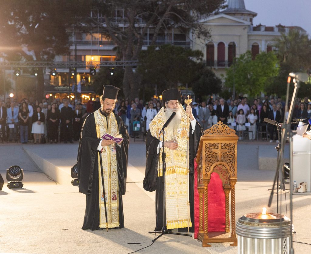 Ακολούθησε επιμνημόσυνη δέηση χοροσταντούτος του Σεβασμιωτάτου Μητροπολίτη Πειραιώς κ.κ. Σεραφείμ. Στη συνέχεια πραγματοποιήθηκαν ομιλίες, που τόνισαν τη σημασία της ενότητας, της ιστορικής δικαίωσης και της διατήρησης της συλλογικής μνήμης, καθώς και κατάθεση στεφάνων.