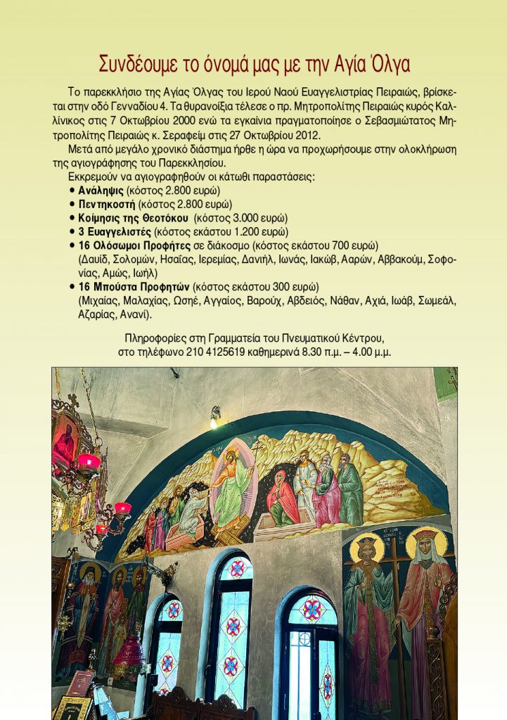 • Συνδέω το όνομά μου με το Παρεκκλήσιο της Αγίας Όλγας