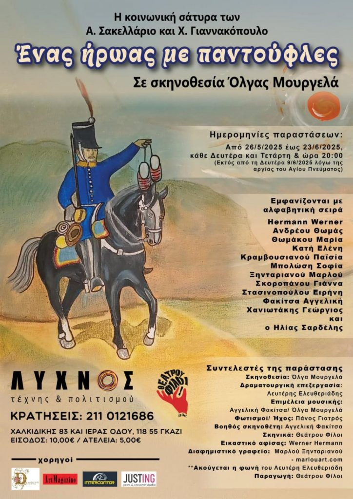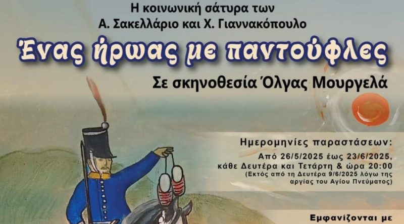 Εκδηλώσεις Εφημερίδα Πολιτισμός “Ένας ήρωας με παντούφλες” από τον Λύχνο Τέχνης & Πολιτισμού 25 Μαΐου, 202525 Μαΐου, 2025 DIMITRIS 0 Σχόλια ΕΚΔΗΛΩΣΕΙΣ, ΠΟΛΙΤΙΣΜΟΣ Author: DIMITRIS