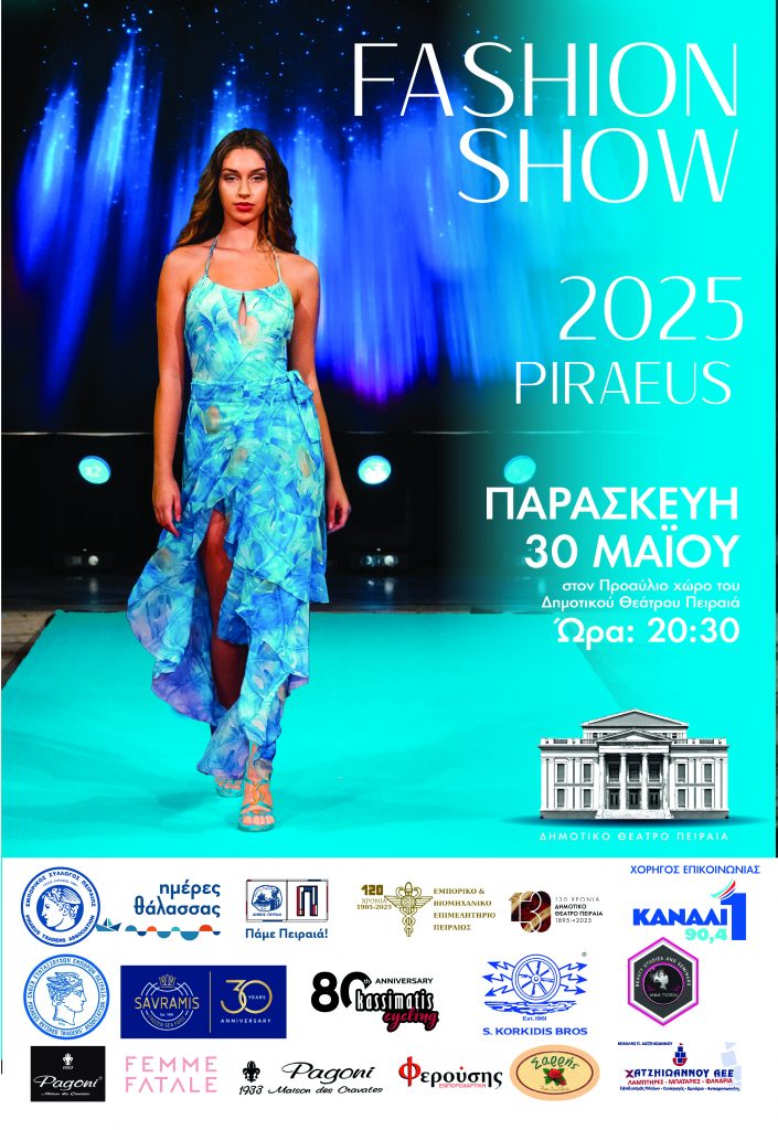 Τη δυναμική της τοπικής αγοράς του Πειραιά θα αναδείξει, για μια ακόμη χρονιά, η εντυπωσιακή επίδειξη μόδας, η οποία θα πραγματοποιηθεί την Παρασκευή 30 Μαΐου, στις 20:30, στον προαύλιο χώρο του Δημοτικού Θεάτρου, στο πλαίσιο του εορτασμού των Ημερών Θάλασσας 2025.