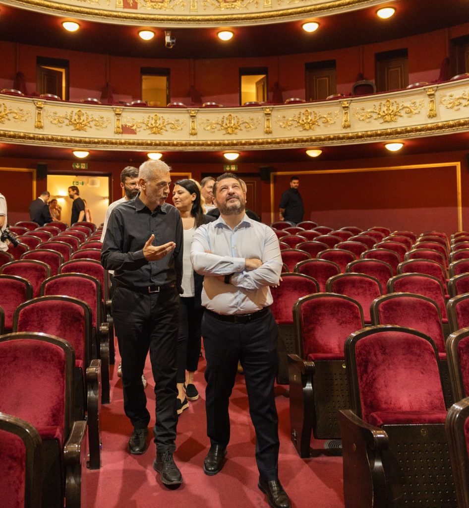 Eπίσκεψη στο Δημοτικό Θέατρο και αυτοψία στις εργασίες ανακατασκευής του κλειστού γηπέδου «Πέτρος Καπαγέρωφ»