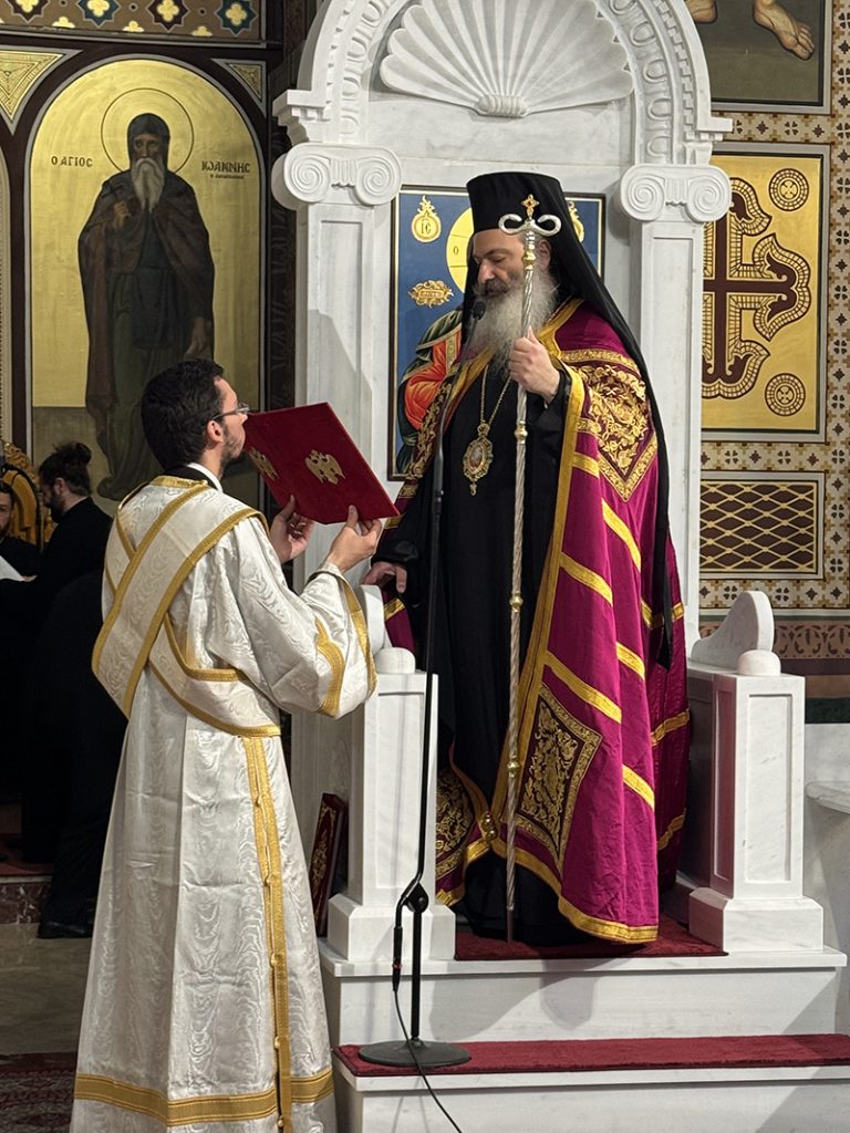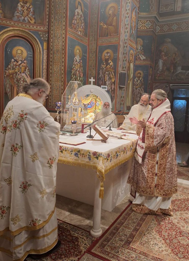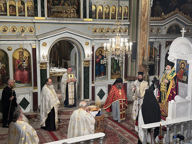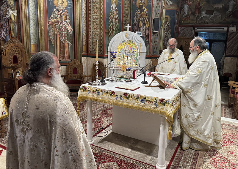 Στη συνέχεια ακολούθησε ιερά Αγρυπνία ιερουργούντος του Σεβασμιωτάτου Μητροπολίτου Σιγκαπούρης και Νοτίου Ασίας κ. Κωνσταντίνου, κατά την διάρκεια της οποίας εψάλησαν οι Χαιρετισμοί του Αγίου.
