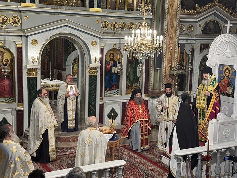 Την ημέρα της εορτής, τελέσθηκε ο Όρθρος και η πανηγυρική θεία Λειτουργία ιερουργούντος του Σεβασμιωτάτου Μητροπολίτου Προικοννήσου κ. Ιωσήφ.