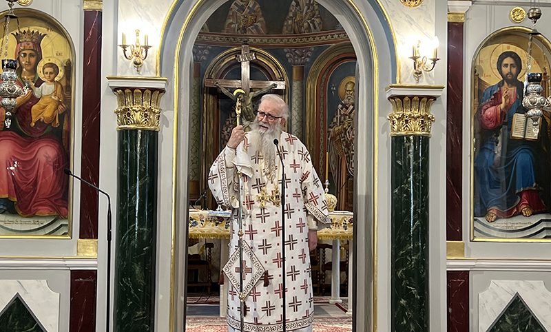 Ο Θεοφιλέστατος στο κήρυγμα του επεσήμανε αρχικά ότι ο Άγιος έζησε σε μία πολύ ταραγμένη εποχή. Έζησε τους δύο μεγάλους παγκόσμιους πολέμους, αλλά έζησε στην πατρίδα του τη μεγάλη δοκιμασία της Οκτωβριανής Επαναστάσεως, όπου καθιδρύθηκε ένα καθεστώς αθεΐας και ο άνθρωπος της εκκλησίας, θεωρούνταν εχθρός του λαού.