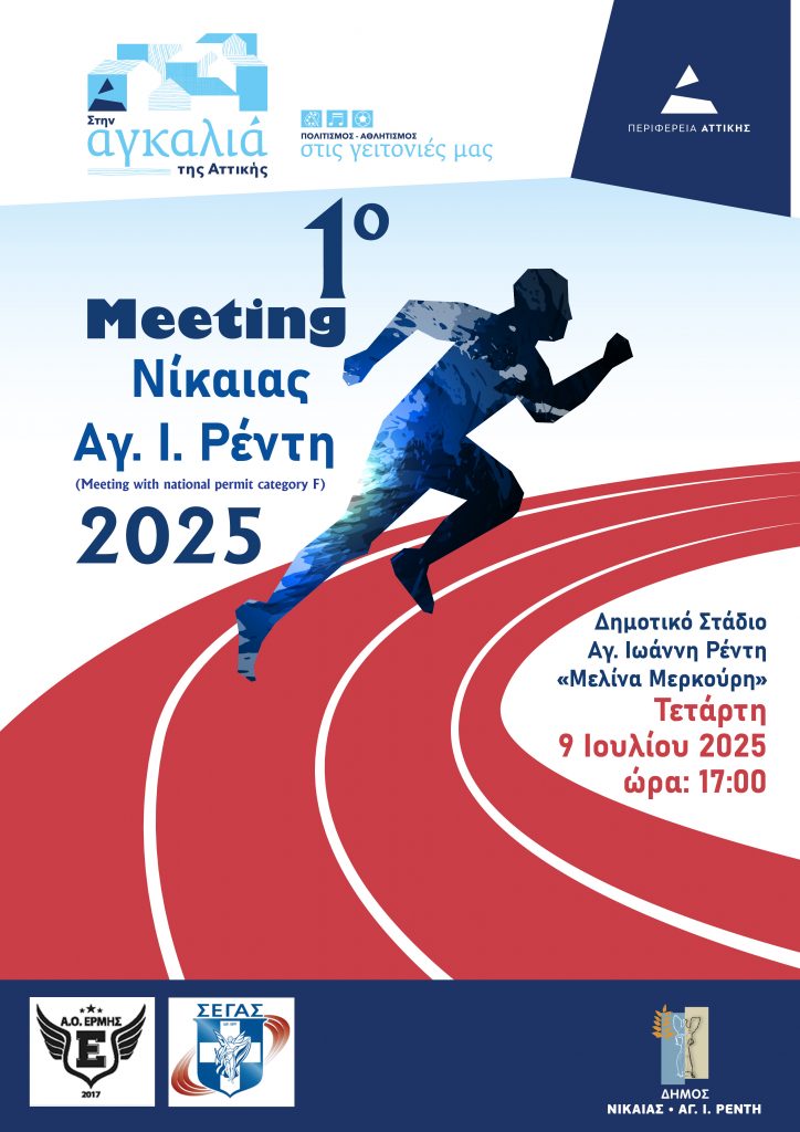 Ο Δήμος Νίκαιας – Αγ. Ι.Ρέντη, σε συνεργασία με τον ΑΟ Ερμής, την ΕΑΣ ΣΕΓΑΣ και την Περιφέρεια Αττικής, διοργανώνει το 1ο Meeting Κλασικού Αθλητισμού, την Τετάρτη 9 Ιουλίου 2025, στο Δημοτικό Στάδιο “Μελίνα Μερκούρη” (28ης Οκτωβρίου 25 & Στρατ. Μακρυγιάννη 85, Ρέντης).