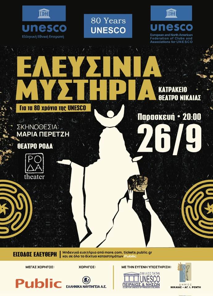 “ΕΛΕΥΣΙΝΙΑ ΜΥΣΤΗΡΙΑ” στο Κατράκειο θέατρο για τα 80 χρόνια της UNESCO