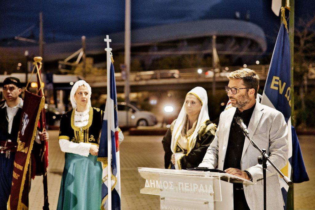 Τον Δήμαρχο Πειραιά Γιάννη Μώραλη εκπροσώπησε, απευθύνοντας χαιρετισμό και καταθέτοντας στεφάνι, ο Εντεταλμένος Δημοτικός Σύμβουλος ΠολιτισμούΓιάννης Χατζηαλέξης.