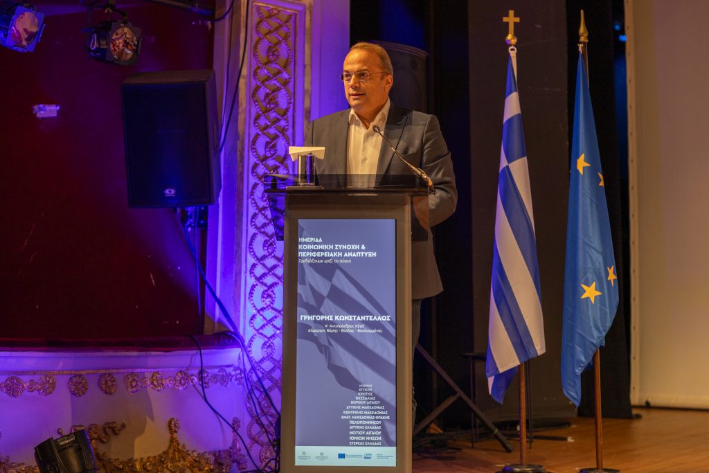 «Σας καλωσορίζω στο Δημοτικό Θέατρο Πειραιά, έναν χώρο με μεγάλη ιστορική και πολιτιστική σημασία για την πόλη μας, για μια ημερίδα που «αγγίζει» την καρδιά της σύγχρονης δημόσιας πολιτικής: την κοινωνική συνοχή και την περιφερειακή ανάπτυξη.