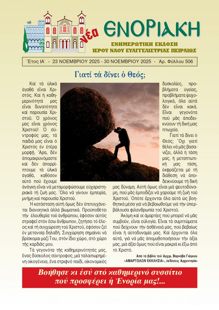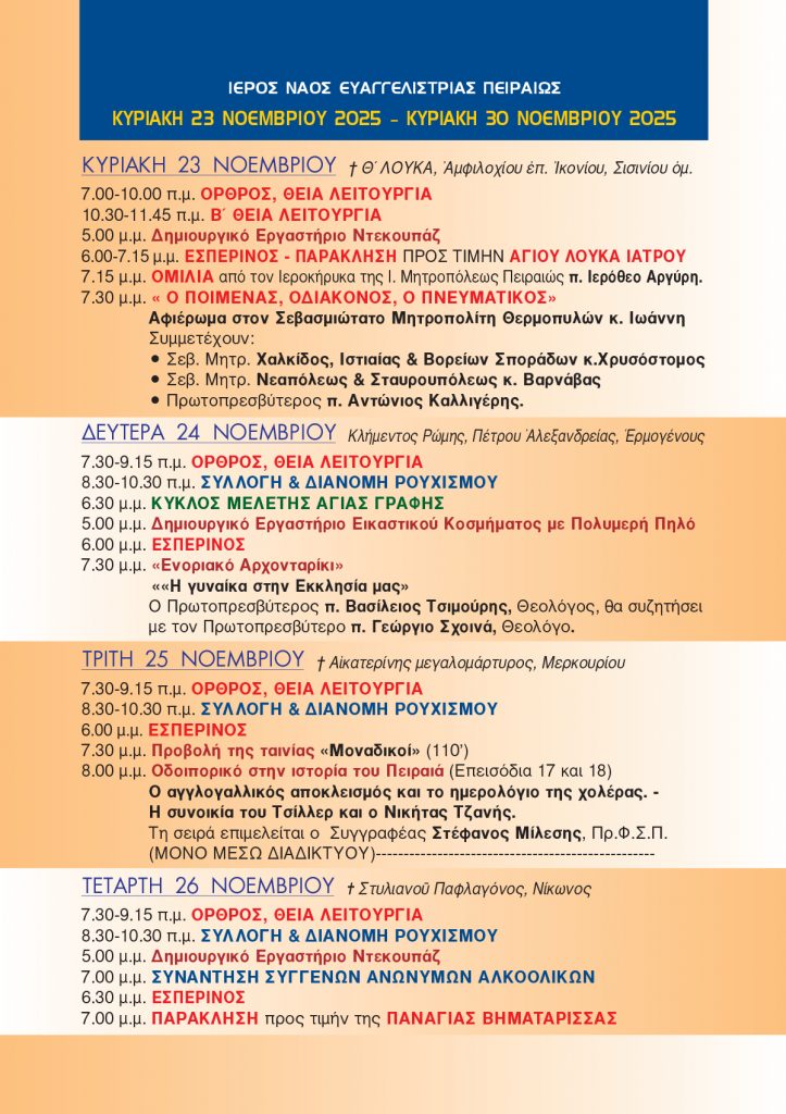«Νέα Ενοριακή» 23 Νοεμβρίου – 30 Νοεμβρίου 2025