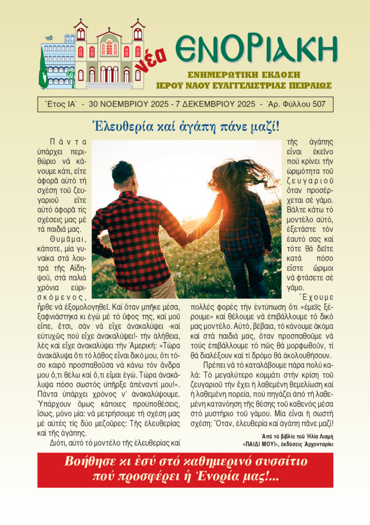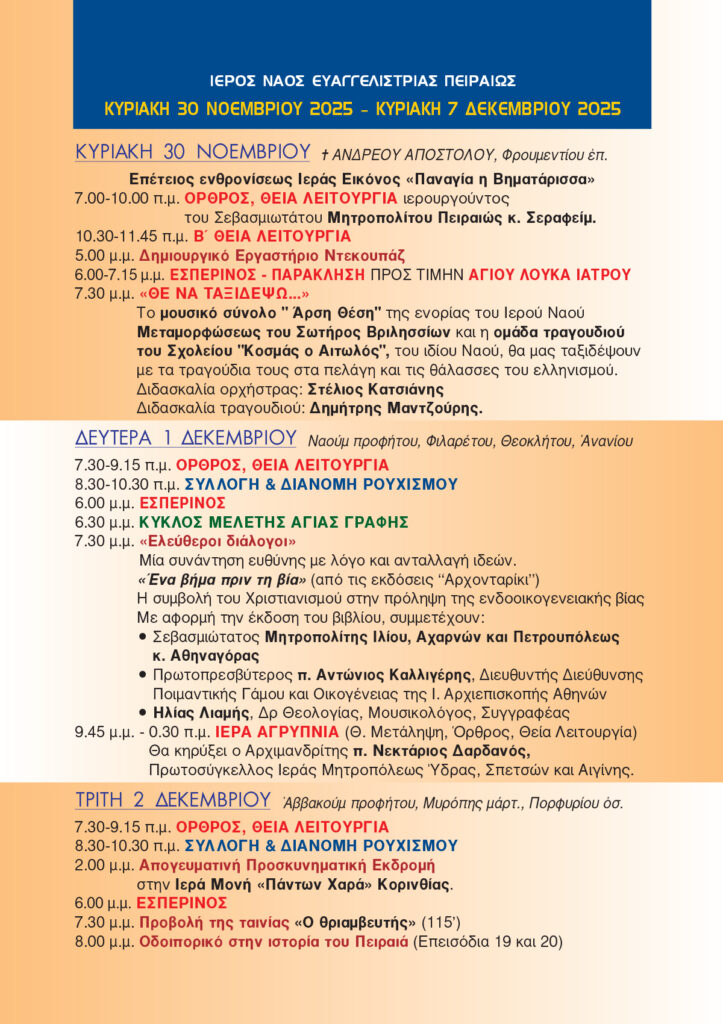 «Νέα Ενοριακή» 30 Νοεμβρίου – 7 Δεκεμβρίου 2025
