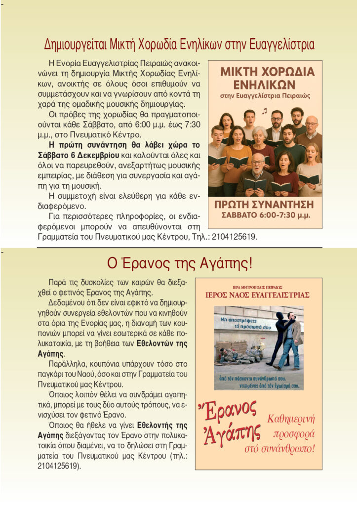• Ενημερωτική έκδοση Ιερού Ναού Ευαγγελιστρίας Πειραιώς.