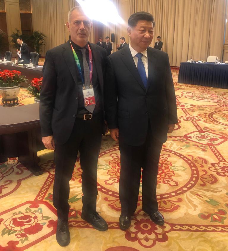 κ. Κυριακού Μητσοτάκη με τον πρόεδρο της Cosco κ. Xu Lirong, στην έδρα της κινεζικής εταιρείας στη Σαγκάη.
