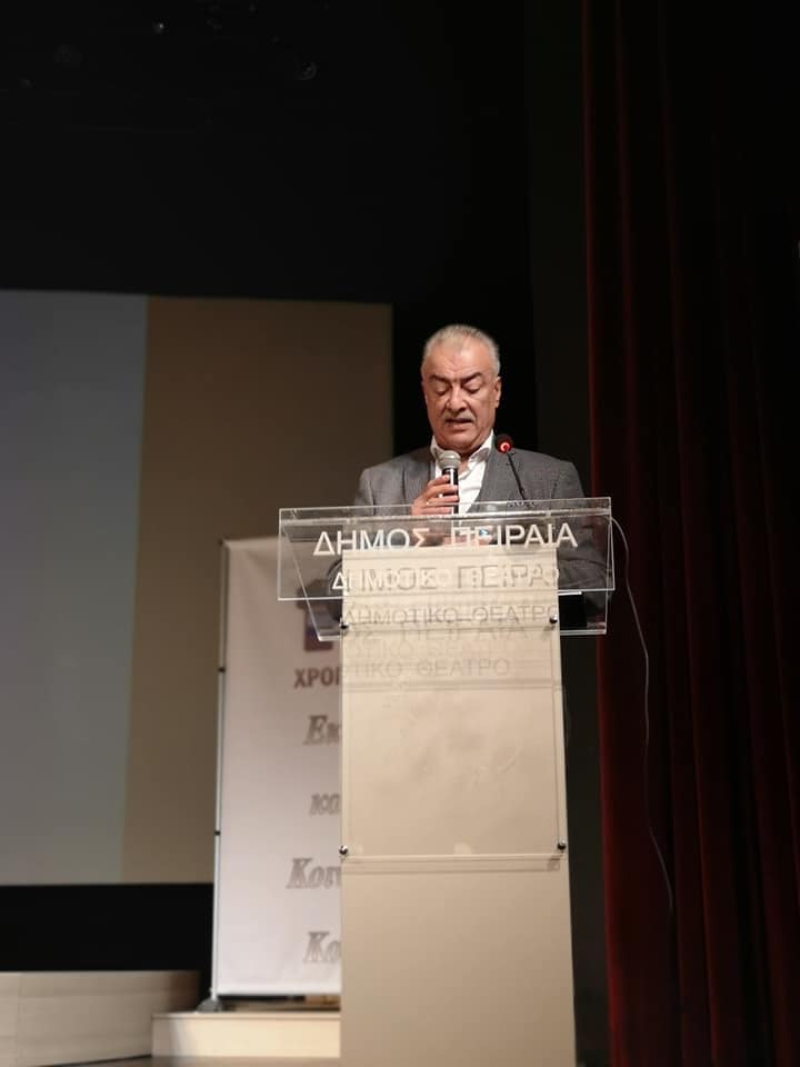 Ο Δήμαρχος Πειραιά κ. Γιάννης Μώραλης απηύθυνε χαιρετισμό στην εορταστική εκδήλωση για τα 100 χρόνια από την ίδρυση του Συλλόγου Εκτελωνιστών – Τελωνειακών Αντιπροσώπων Πειραιώς – Αθηνών που πραγματοποιήθηκε σήμερα, στο Δημοτικό Θέατρο Πειραιά.