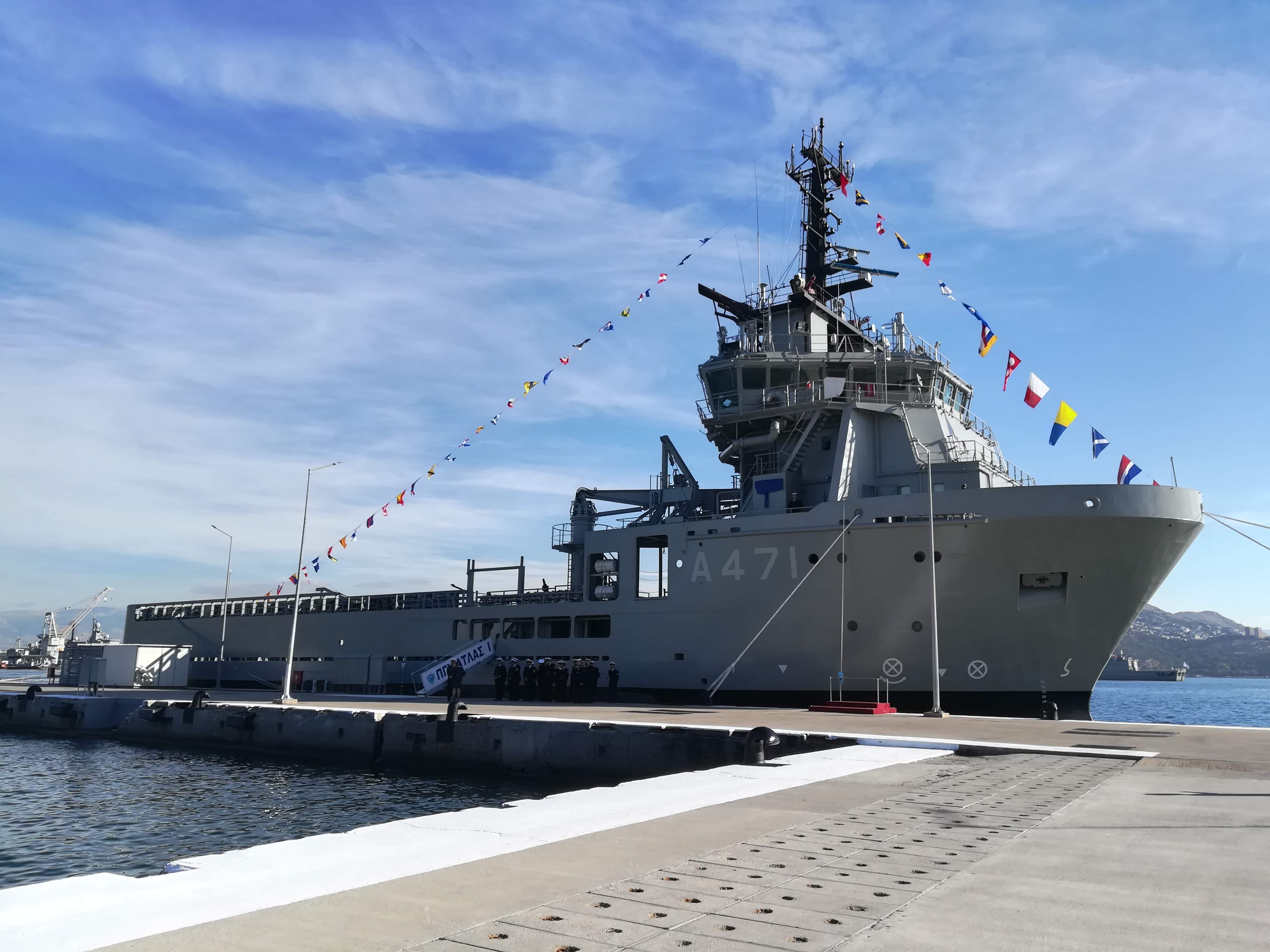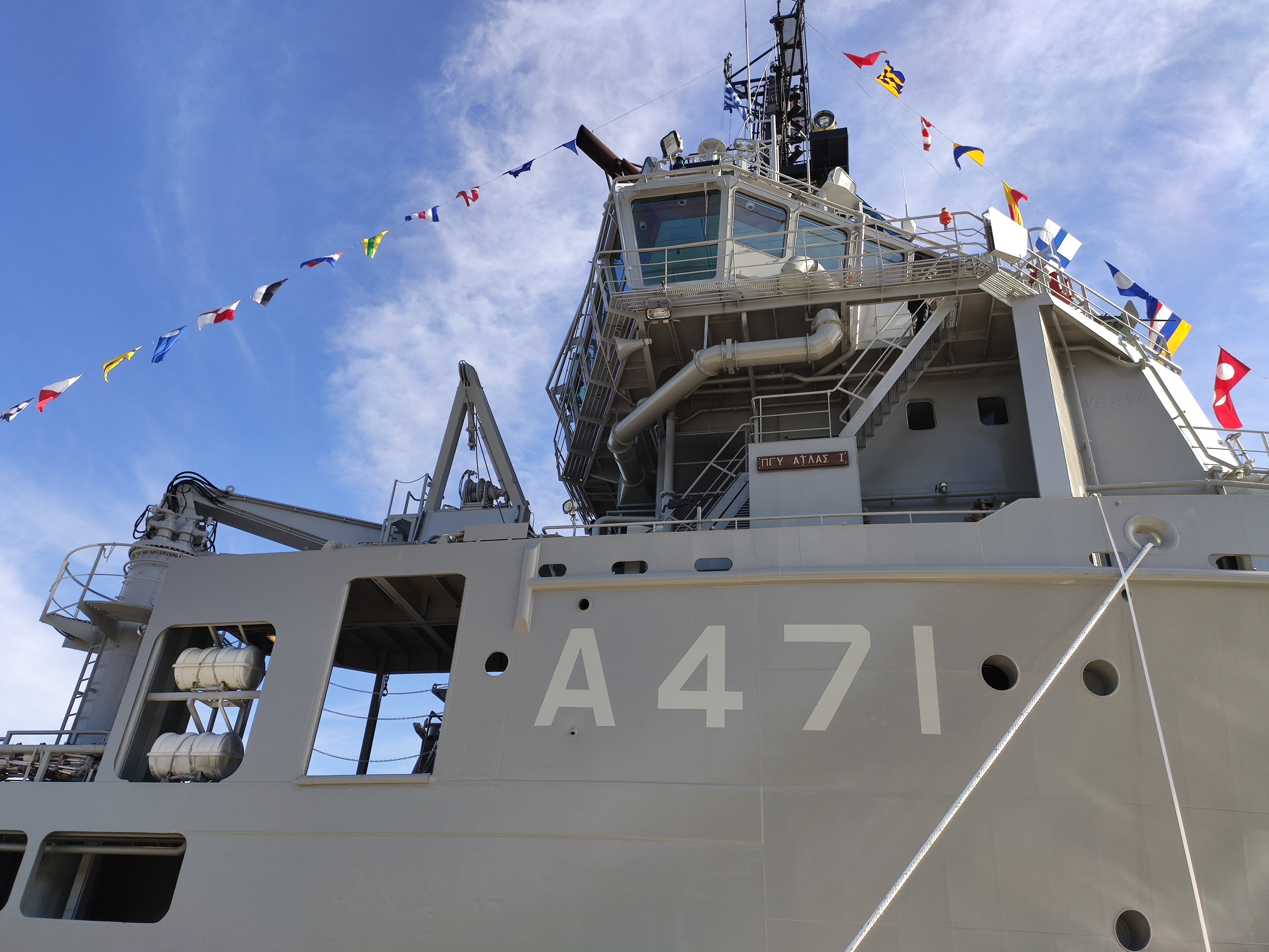 Τη Δευτέρα 2 Δεκεμβρίου πραγματοποιήθηκε με ιδιαίτερη λαμπρότητα στον Ναύσταθμο Σαλαμίνας η τελετή ονοματοδοσίας και ένταξης στον Στόλο του Πλοίου Γενικής Υποστήριξης ανοικτής θαλάσσης, το οποίο προσέφερε ο Πρόεδρος του Ιδρύματος Αικατερίνης Λασκαρίδη κ. Παναγιώτης Λασκαρίδης στο Πολεμικό Ναυτικό.