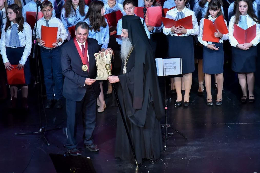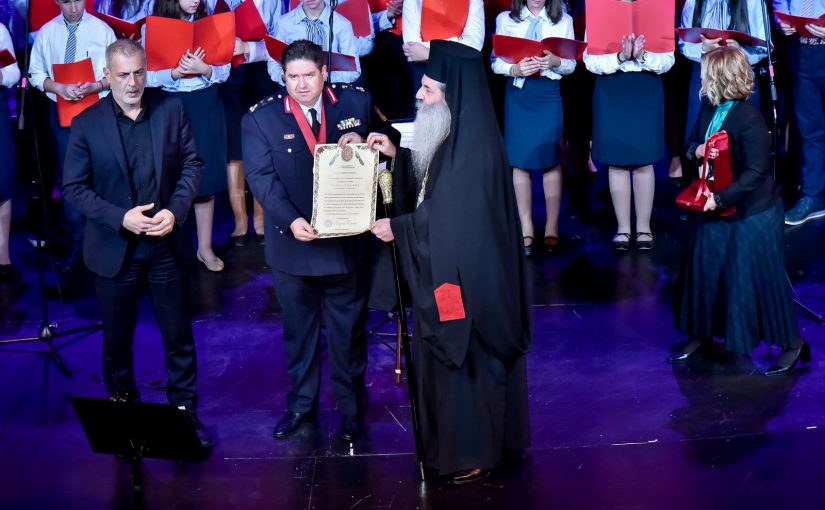 Ο Σεβασμιώτατος Μητροπολίτης Πειραιώς και Φαλήρου κ.κ. Σεραφείμ, στον χαιρετισμό του, μεταξύ άλλων,  αναφέρθηκε στη φιλανθρωπική εκδήλωση  που έχει στόχο να στείλει μήνυμα ενότητας και να υποστηρίξει την προσπάθεια των  εκατοντάδων εθελοντών της Ιεράς Μητροπόλεως Πειραιώς. Επίσης, ευχαρίστησε  θερμά  τον Δήμαρχο Πειραιά κ. Γιάννη Μώραλη, τον Πρόεδρο του Ο.Π.Α.Ν. κ. Ιωσήφ Βουράκη και τον Καλλιτεχνικό  Διευθυντή του Δημοτικού Θεάτρου κ. Νίκο Διαμαντή για την παραχώρηση του Δημοτικού Θεάτρου προκειμένου να πραγματοποιηθεί η εκδήλωση.  Εξέφρασε  ακόμη, τις ευχαριστίες του σε όλους εκείνους που με την παρουσία τους και την αγάπη τους  χαρίζουν τη δύναμη να συνεχίσει η Εκκλησία το έργο της, καθώς και όλους όσοι συνέβαλαν στη διοργάνωση της  εκδήλωσης.
