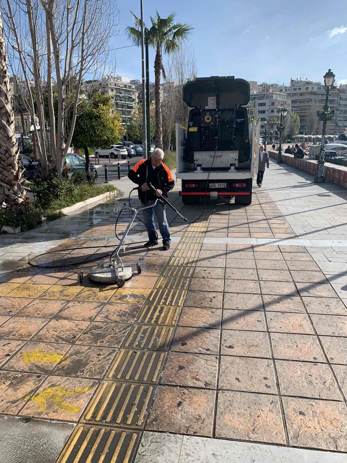 Καθημερινά πλένονται πεζοδρόμια με νέα πιεστικά μηχανήματα, καθώς και κάδοι και σημεία που χρήζουν παρέμβασης με νέες μεθόδους καθαρισμού. Επιπλέον, οχήματα του τομέα Καθαριότητας επιχειρούν με σάρωθρα και πλυστικά μηχανήματα σε δρόμους όλων των Δημοτικών Κοινοτήτων του Πειραιά, προκειμένου να είναι όσο το δυνατόν πιο καθαρές οι γειτονιές της πόλης μας.