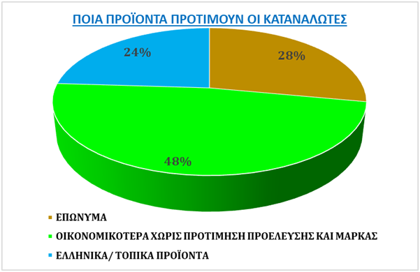 Οι επιχειρήσεις που ξεκίνησαν με προσφορές προσέλκυσαν περισσότερο τους καταναλωτές. Το 86% των εμπορικών καταστημάτων στην Αττική έκαναν προσφορές με ποσοστό έκπτωσης από 20 έως 40% και μόνο το 14% των εμπόρων δήλωσε πως δεν επανεκκίνησε με τη διενέργεια προσφορών. Οι 5 στους 10 καταναλωτές έδειξαν προτίμηση στα οικονομικότερα αγαθά (48%) χωρίς διάκριση προέλευσης και μάρκας. Σχεδόν οι 3 στους 10 διατηρούν τη προτίμηση τους στα επώνυμα προϊόντα (28%), ενώ περισσότεροι από 2 στους 10 προτιμούν πλέον αποκλειστικά τα ελληνικά, τοπικά προϊόντα (24%).